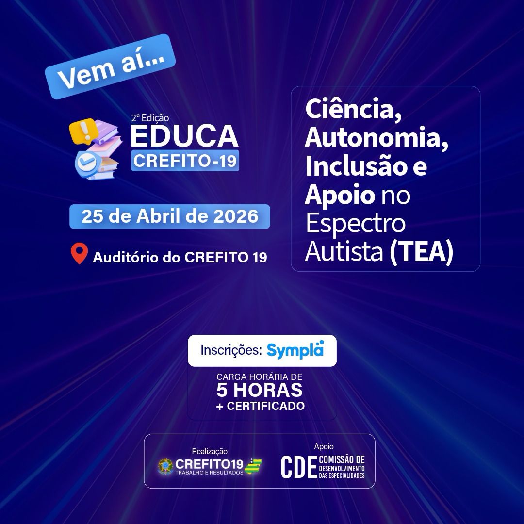 CREFITO-19 abre inscrições para a 2° Edição do EDUCA CREFITO-19 com foco em ciência, autonomia, inclusão e apoio no espectro autista